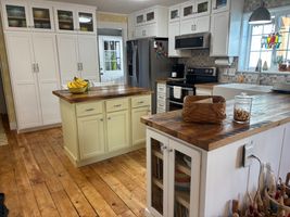 Custom cabinetry, countertops, floating shelves and tile work done for one of my favorite families. The countertops are made from an old Kentucky barn.